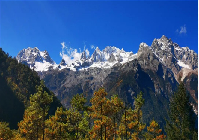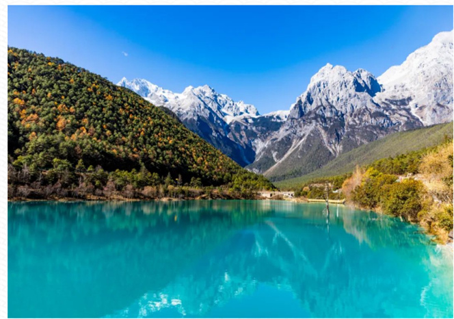 玉龍雪山,遠(yuǎn)山如黛,云蒸霞蔚,韻味悠長,仿佛誤入了人間仙境,從此一往而深。