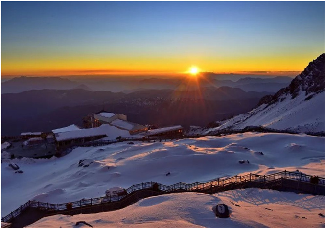 當(dāng)清晨的第一縷陽光照亮主峰扇子陡,山尖金燦燦,隨著陽光慢慢傾灑整座山體,日照金山奇景顯現(xiàn)眼前。起得足夠早,拍個(gè)延時(shí),玉龍雪山奇幻奇美。