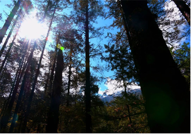 這里的杉林很茂密,陽光透過杉林間隙灑在地面,暖洋洋的,讓人很舒服。要不說秋冬的陽光最有暖意,炙熱“烘烤”下,可以靜靜享受一天。