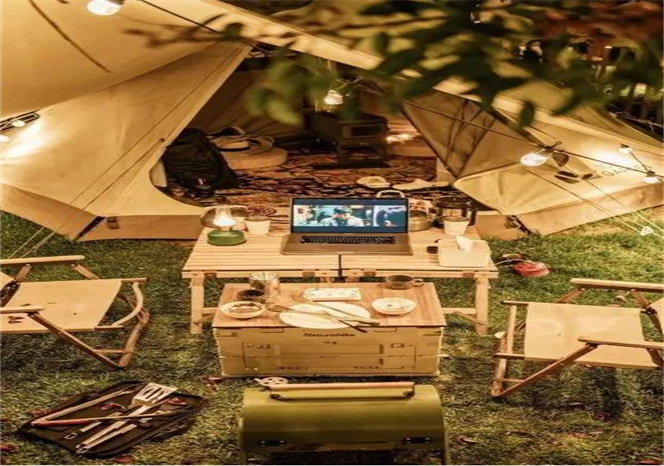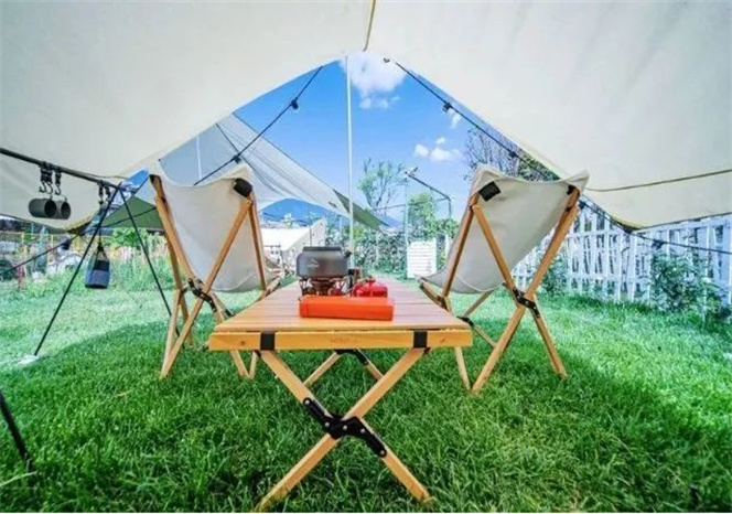 米倉花園承載著園主的詩和遠方,這里種滿了綠植和鮮花,漫步在花園里,如同漫游在愛麗絲仙境一般。露營地便設在花園的最里邊,11頂戶外帳篷原地搭起。每間帳篷就是一個小型的家,配備桌椅、烤火器、燒烤器等。帳篷間還有白色柵欄隔開,給足客人安全感??晒┞稜I的草坪很大,若遇到團建,可搭20頂左右的戶外帳篷,還可以在這里瓜果采摘,品一品下午茶。