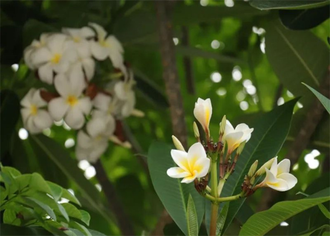 眼下寨子中的鮮花盛放依舊,紫白色的蝶豆花,也還懶懶地生長(zhǎng)在枝頭,抬頭一望,一簇簇白色的雞蛋花正含苞待放。