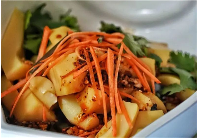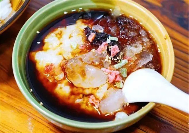豌豆粉色澤金黃,質(zhì)地細(xì)膩滑嫩,具有較強(qiáng)的吸附性,能吸收調(diào)料里各種鮮美的味道,吃上一口,酸辣可口的調(diào)料配上自身濃郁的豆香味,令人食欲大增,吃了一碗還意猶未盡。