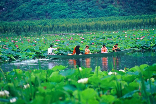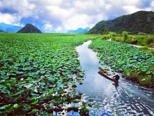 每年的6月至9月 普者黑近300種、約2萬畝荷花競相開放 綿延幾十里 荷葉翠綠,花色多樣,亭亭玉立 這樣壯觀的排場只能在這里看到泛舟 比瀘沽湖多了些歡樂