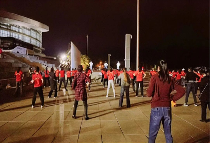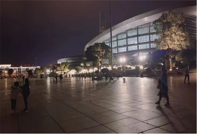 全民健身中心的區(qū)域內(nèi),有一個巨大的廣場。有人說這里是孩子和狗子的天堂,然而,實際上這里容納了從老到少、從男到女的飯后娛樂時光。
