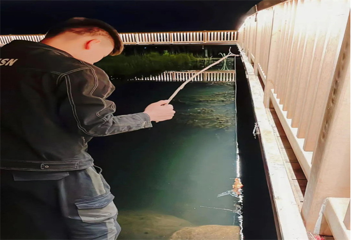 偶遇一對情侶,帶著自制的釣竿和網(wǎng)兜來釣小龍蝦,看著他們旁邊空空如也的塑料桶,想來還沒有什么收獲,也許他們注重的也不是收獲,而是一種夜釣的樂趣吧。