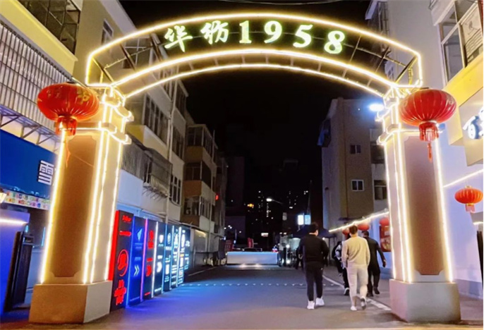 老舊紡織廠改造而成的華紡1958中,雖然也有美食,卻淪為配角,這里是真正的“夜貓子”天堂,當(dāng)夜幕降臨,華燈初上,華紡1958的熱鬧才剛剛拉開帷幕。