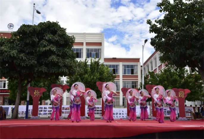 彌渡縣從2008年開始實(shí)施“花燈民歌進(jìn)校園工程”,14年來成果豐碩。彌渡縣將編撰鄉(xiāng)土音樂教材《花燈民歌音樂》納入音樂課程教學(xué),編創(chuàng)少兒花燈健身操作為中小學(xué)生課間操,在全縣推廣教學(xué)。