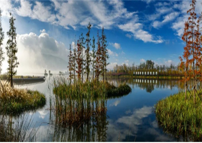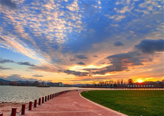 矣邦池之南,復有遠山東西橫屬,則此中亦一南北中洼之坑,而水則去來皆透于穴矣。這是當年徐霞客游歷至此所寫。而今的黃草洲國家濕地公園內(nèi),碧波蕩漾,落英繽紛,蜿蜒的小道環(huán)濕地而建,通向湖泊的深處,美不勝收。