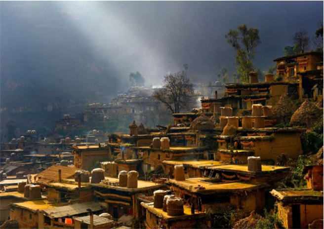 城子古村的房子依山而建,上下相連,左右相通,蔚為壯觀。土掌房融合了當?shù)匾妥搴蜐h族民居的特點,冬暖夏涼,具有鮮明地方特色,堪稱中國民居建筑文化與建造技術(shù)發(fā)展史上的“活化石”。