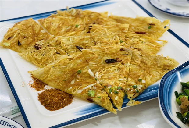 干焙洋芋絲:沒有吃過的人會覺得它和洋芋粑粑很像,實際吃了才知道,干焙洋芋絲別有一番風(fēng)味。做得好的干焙洋芋絲,根根分明卻又不會散開,酥而不干、糯而不爛,也是云南人的心頭好之一。