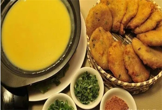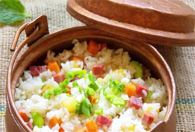 銅鍋洋芋飯:將洋芋洗凈后,切成塊,把火腿切成丁,一同入鍋加油、鹽等猛火炒香,再以米飯蓋面從鍋邊徐徐加入適量的清水后,以小火燜熟,那細(xì)軟香甜的滋味簡直讓人垂涎欲滴。