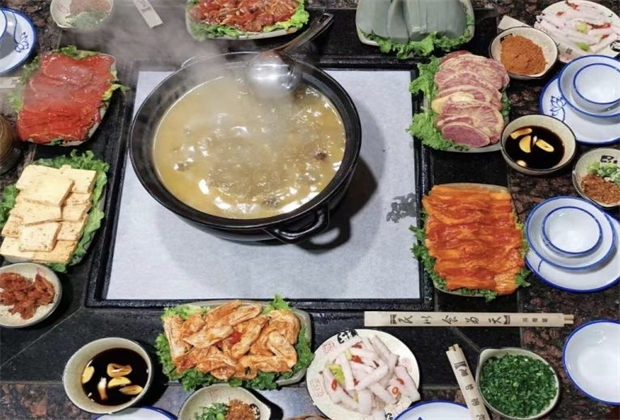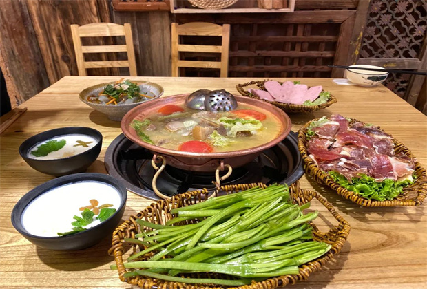 納西火塘,在熱氣騰騰的火鍋周圍,鋪滿了各種各樣的烤肉,親友圍坐一堂,既有美食,也有歡笑。