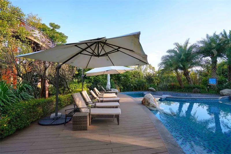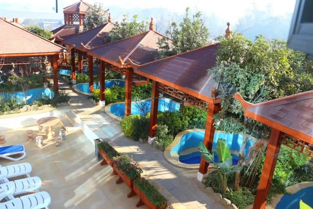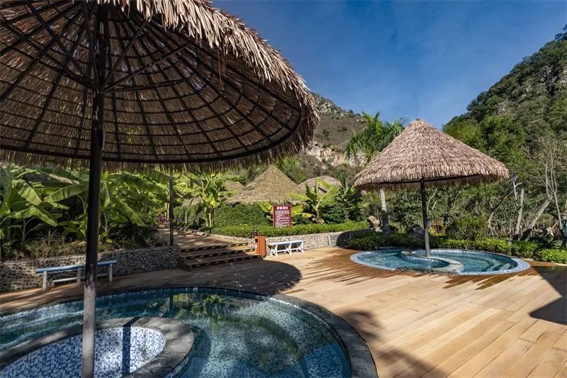 一泉一景,湯屋、泡池、森林、廊亭和遠景,相映成趣,相得益彰,有著回歸自然、天人合一的養(yǎng)生意境。先進完善的供水系統(tǒng),