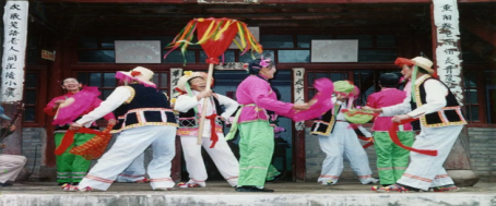 圖片源于劉彩菊參加云南省第九屆歌、舞、樂展演節(jié)目姚安壩子腔《歡迎你到姚安來》錄制